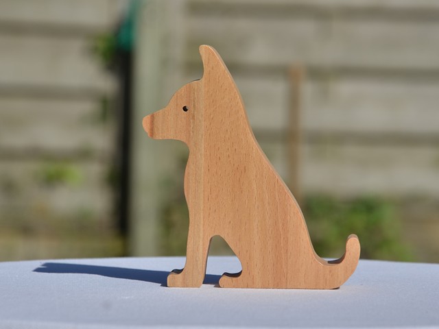 Porte-téléphone en bois représentant un chat majesteux assis. Fabrication artisanale bretonne.