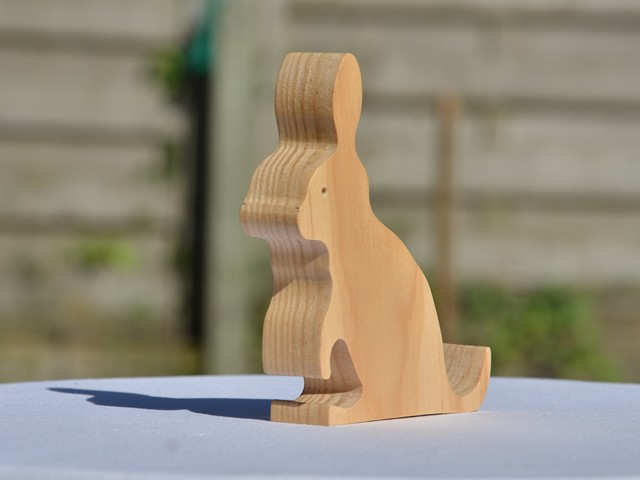 Un petit lapin assis sur son séant : le tout en bois pour supporter votre téléphone afin de libérer vos mains et ne pas fatiguer votre cou pendant les conversations en vidéo ou pour regarder en toute tranquilité un film. La queue empêche le glissement du téléphone.